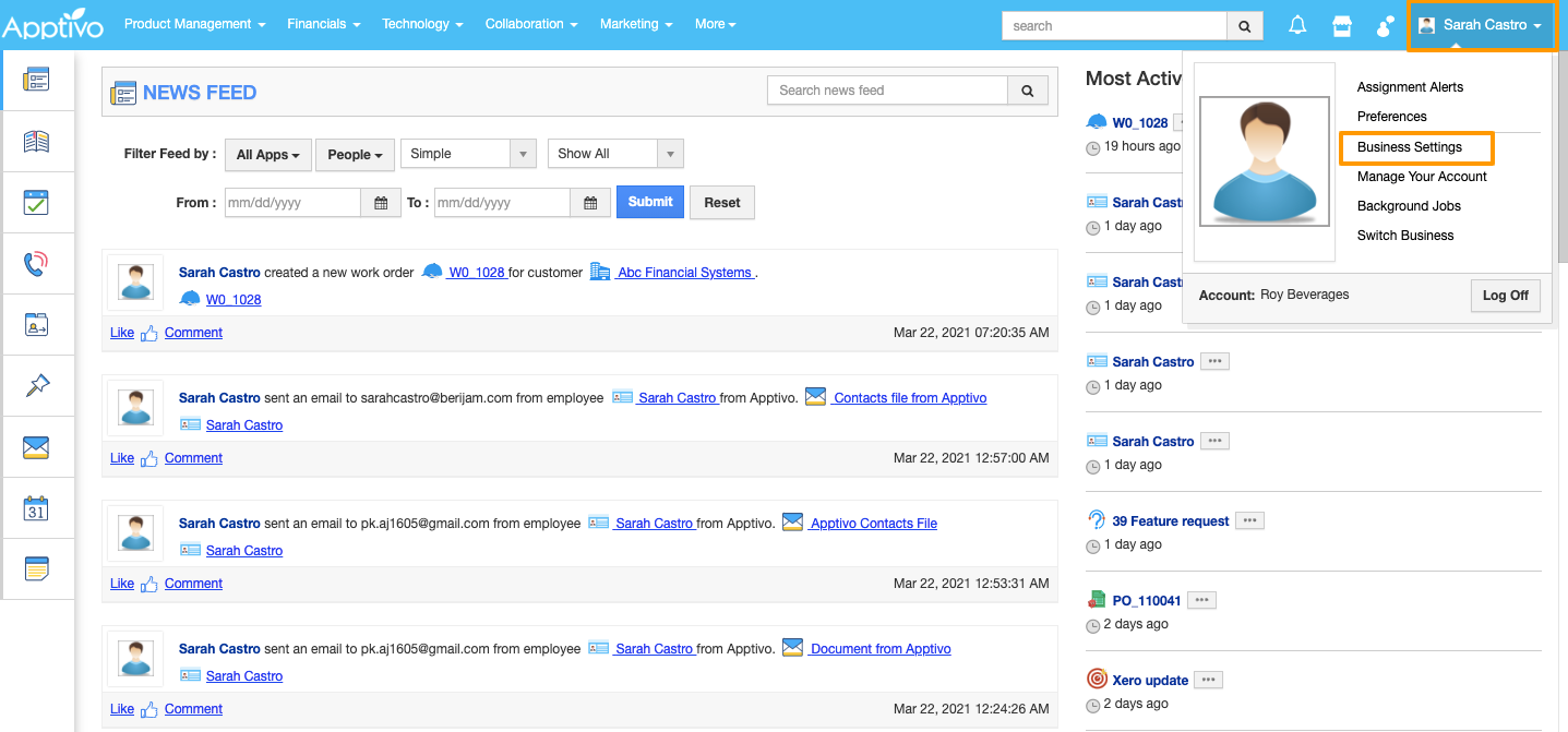 - Login and access your Apptivo account.