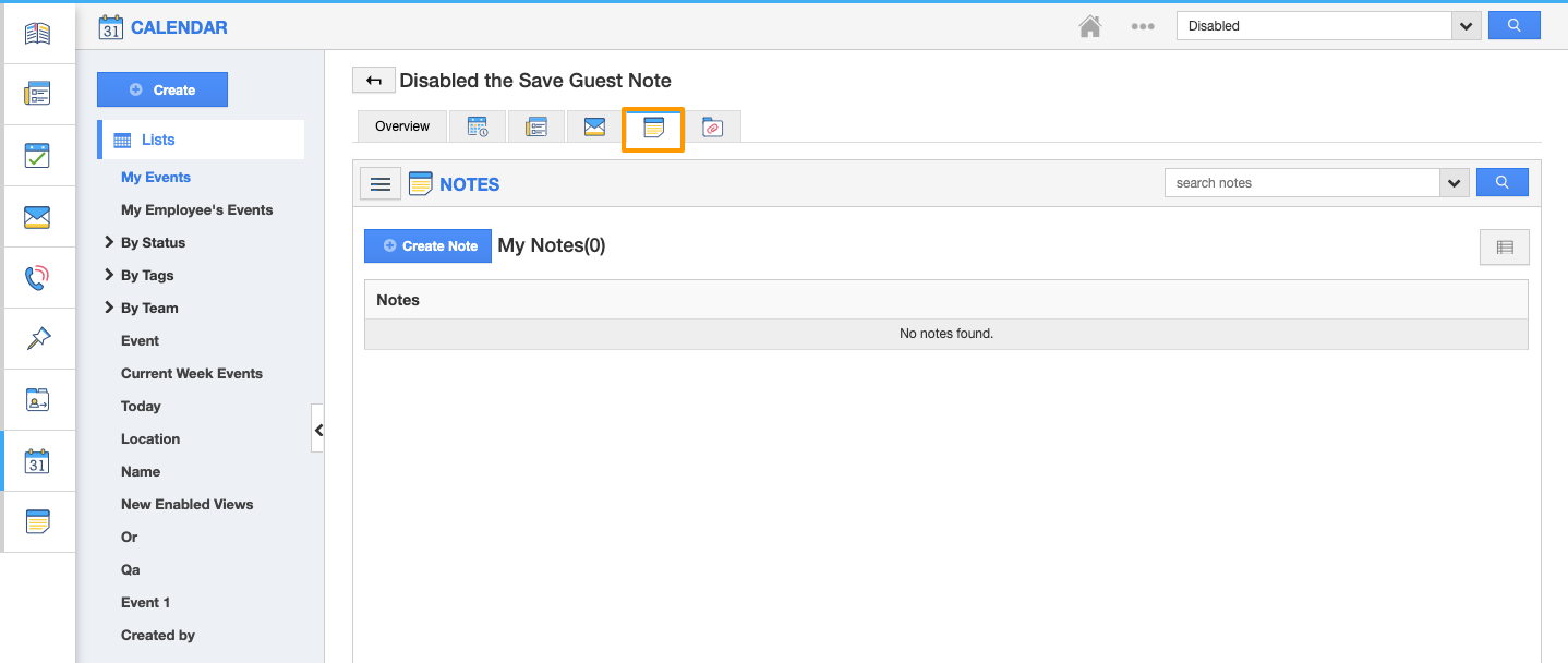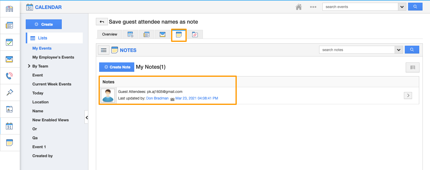 - You can view the synced events on the Apptivo calendar and the notes also will be created with the guest user id.