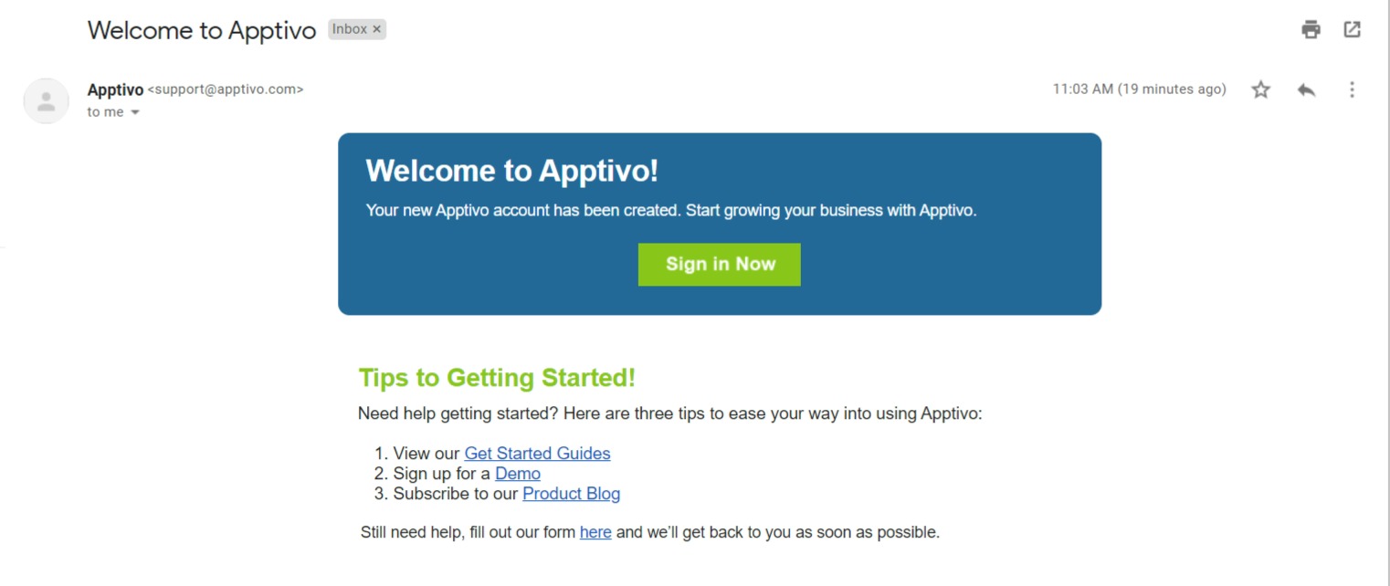 - When you click on the Apptivo App, you will be redirected to Apptivo’s Welcome page.