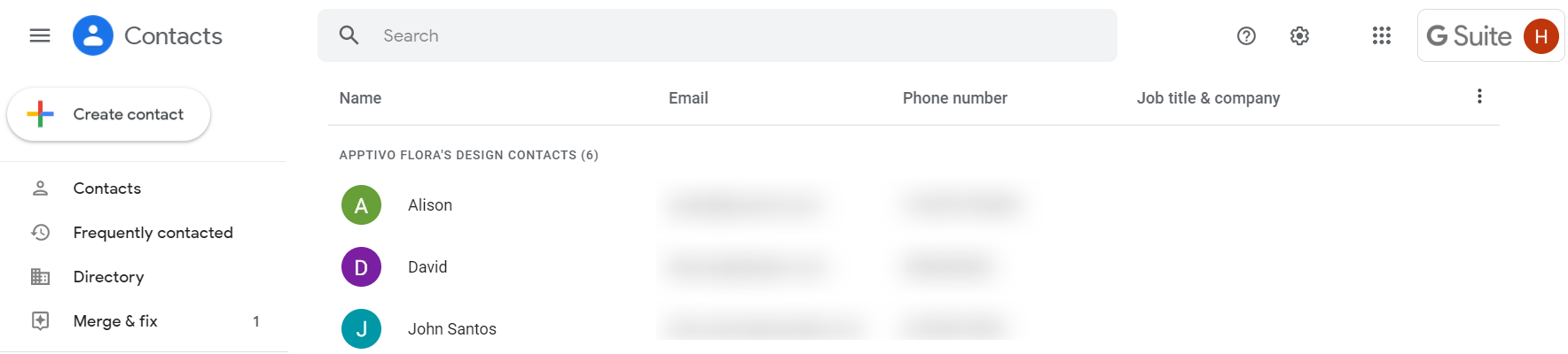 - On selecting create, a new contact is created in your GSuite Contacts App under the label Apptivo “Your Business Name” Contacts.