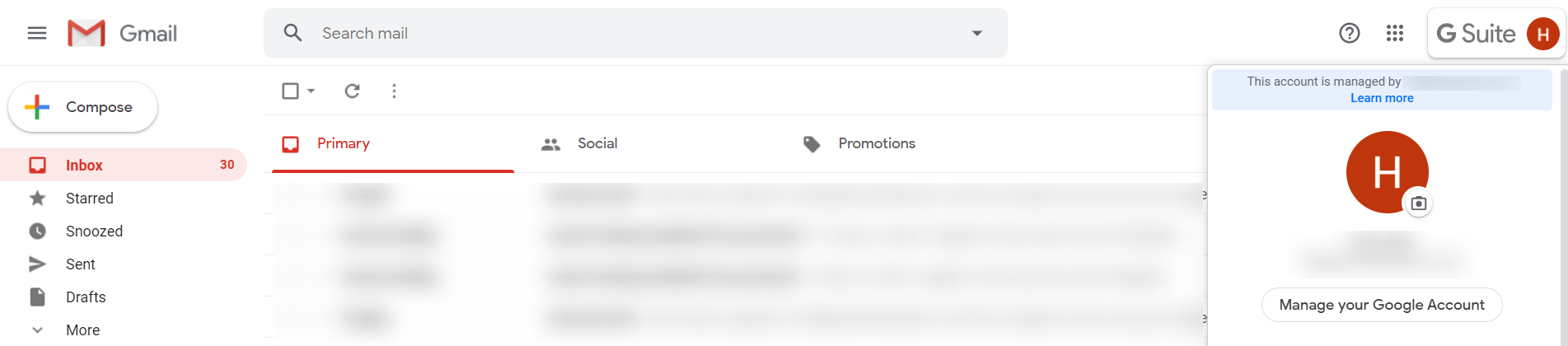 - Log into your Gmail account and select Manage Your Account from my Profile.