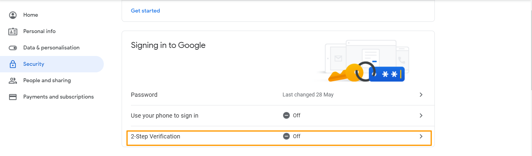 - Click on 2-Step Verification.