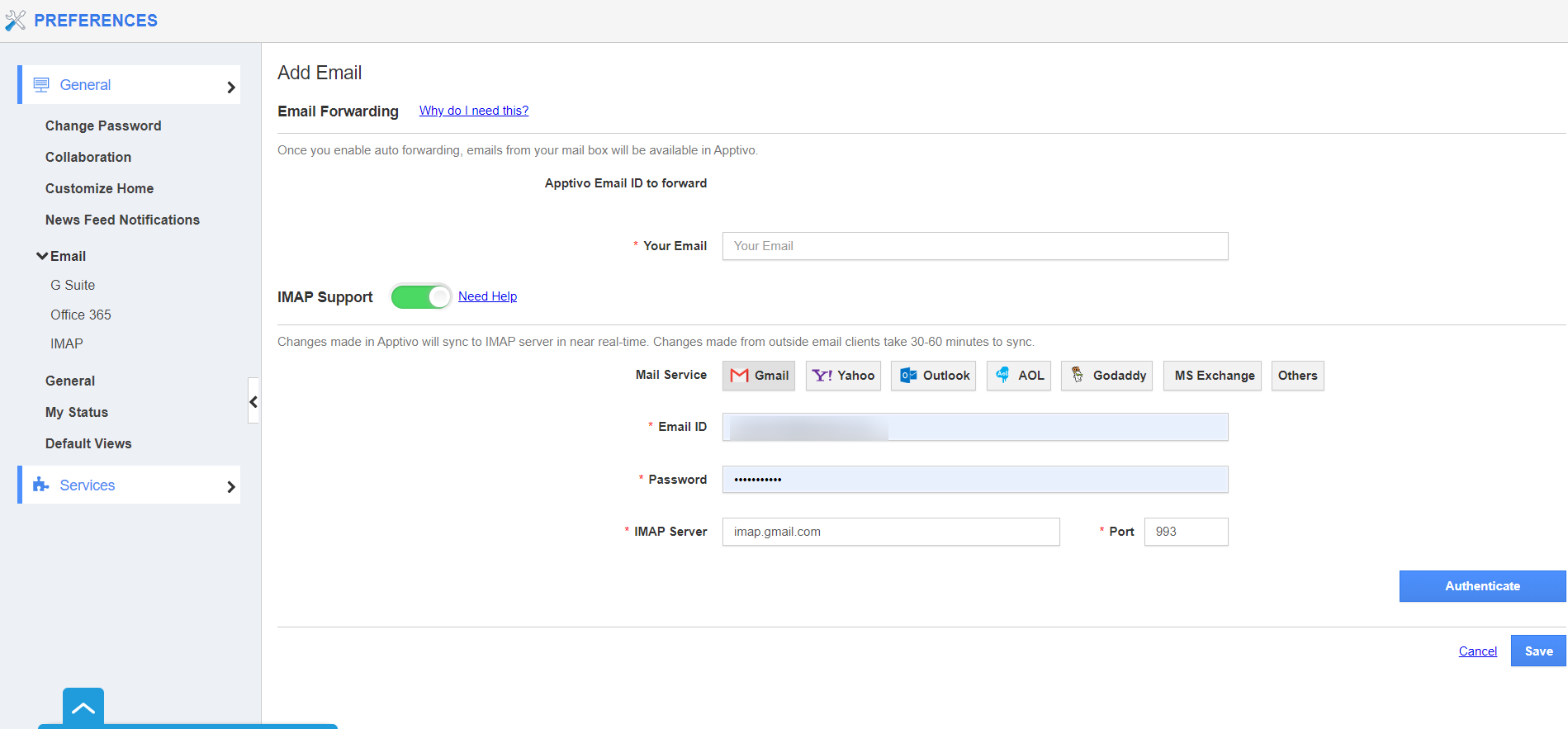 - You can replace the created password with the filed password in Gmail IMAP to log into Apptivo effortlessly.