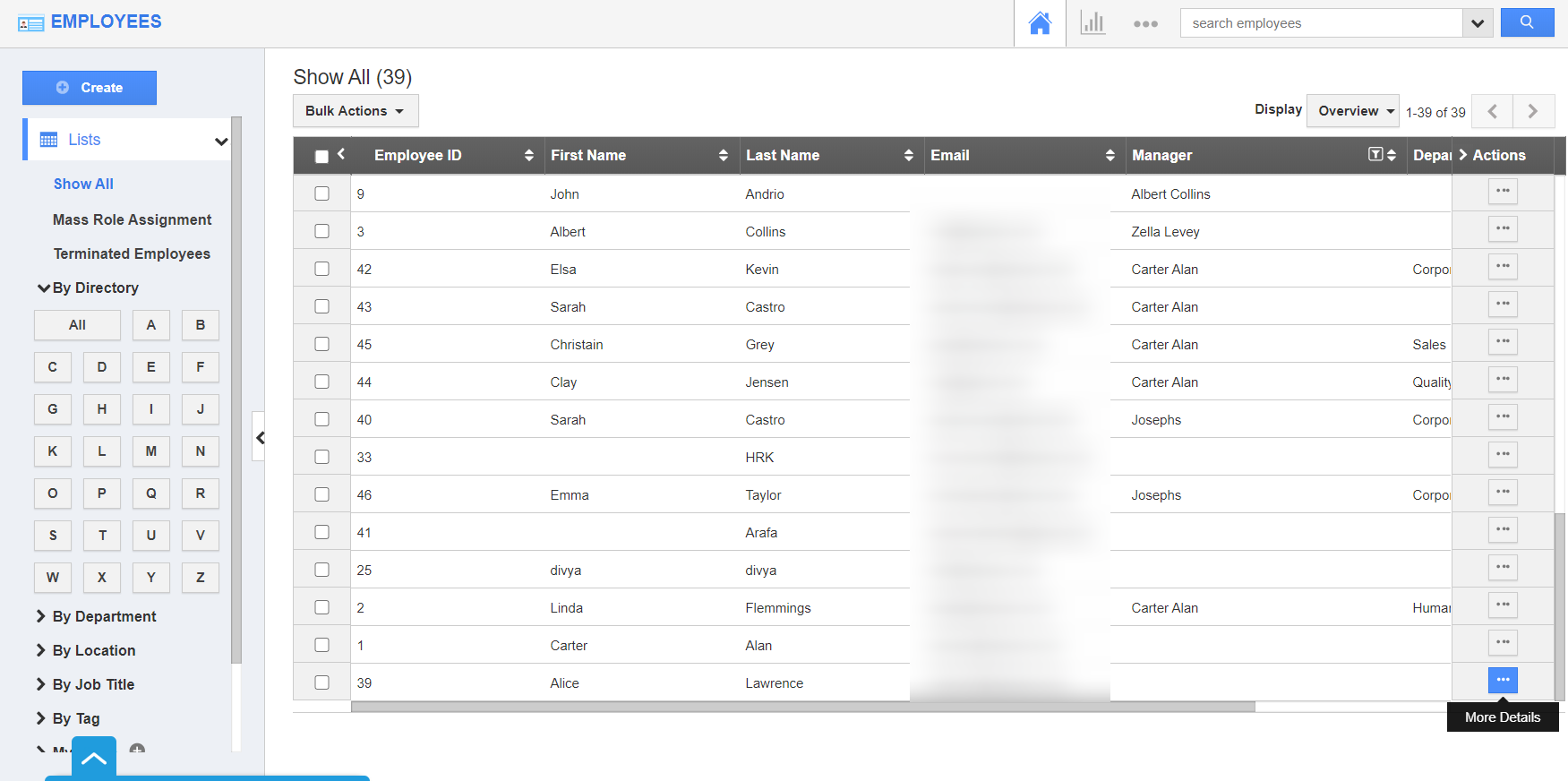 - Select the employee whose employment you would like to terminate by clicking More Details.