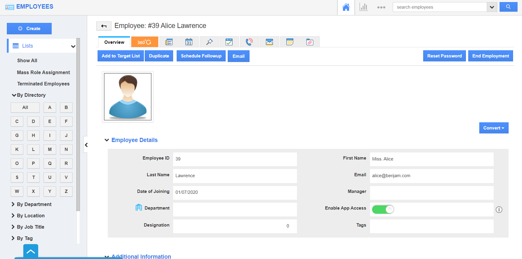 Employees App helps you to maintain all your firm employees’ details at a single source. Once the employee quits the job or been terminated from services. You can end employment for a particular employee.