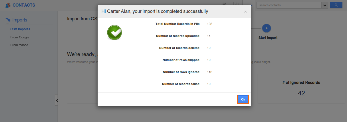 - Here we go, the import is done successfully, and the log will display the totals of imported records, failed, etc.