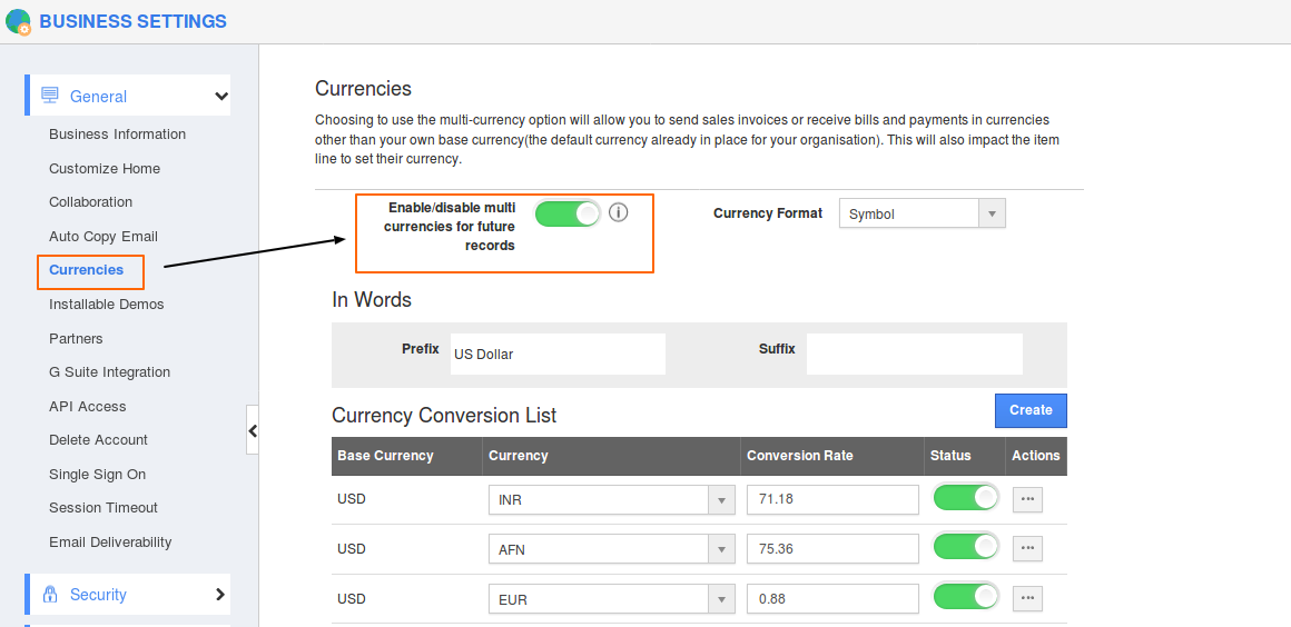 Steps to Configure Currencies in Business Settings