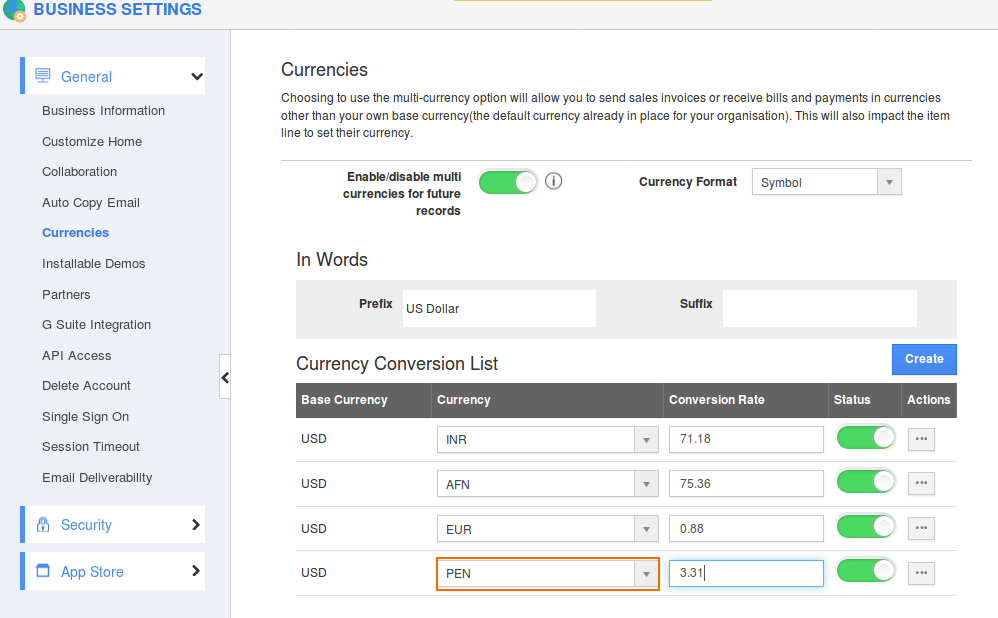 - Click on the “Create” button to add your currency conversion.
