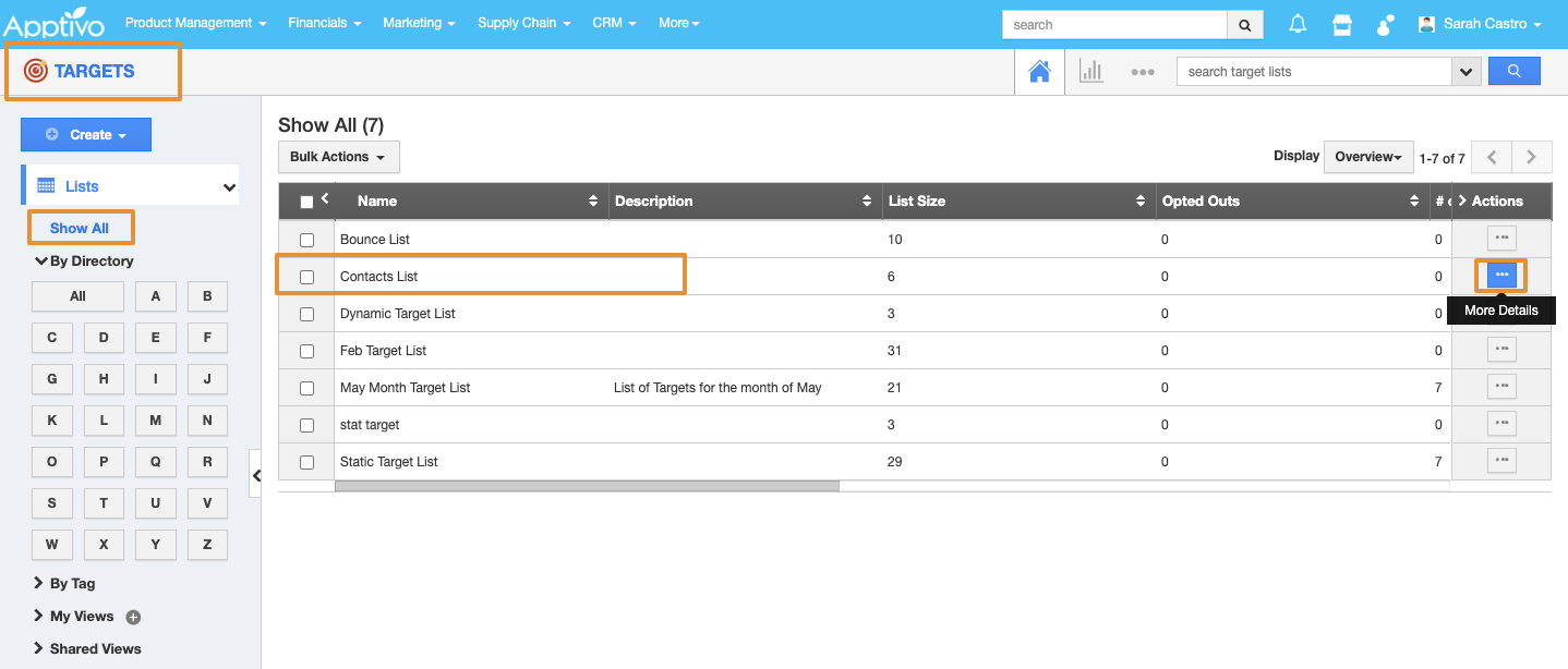 - Click on "Lists" drop-down and select “Show All” from the left navigation panel.