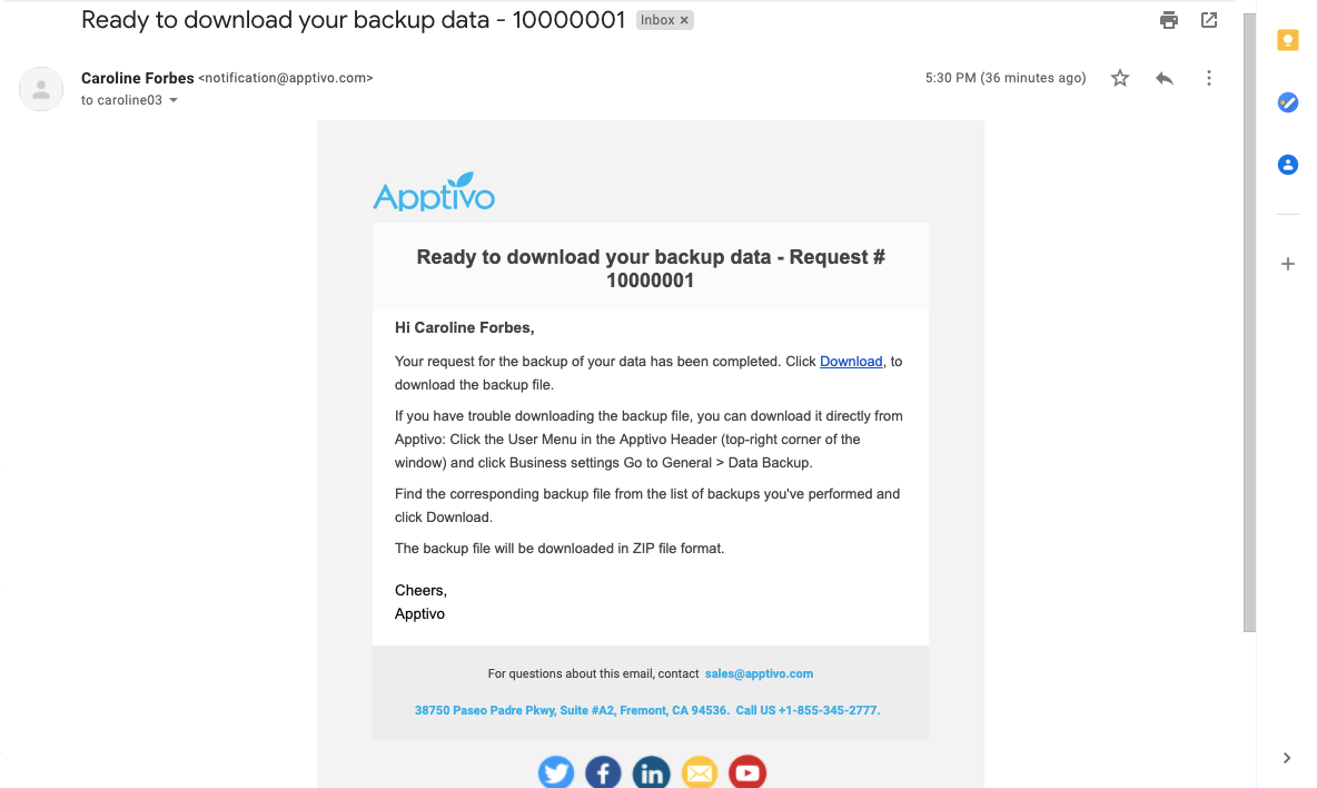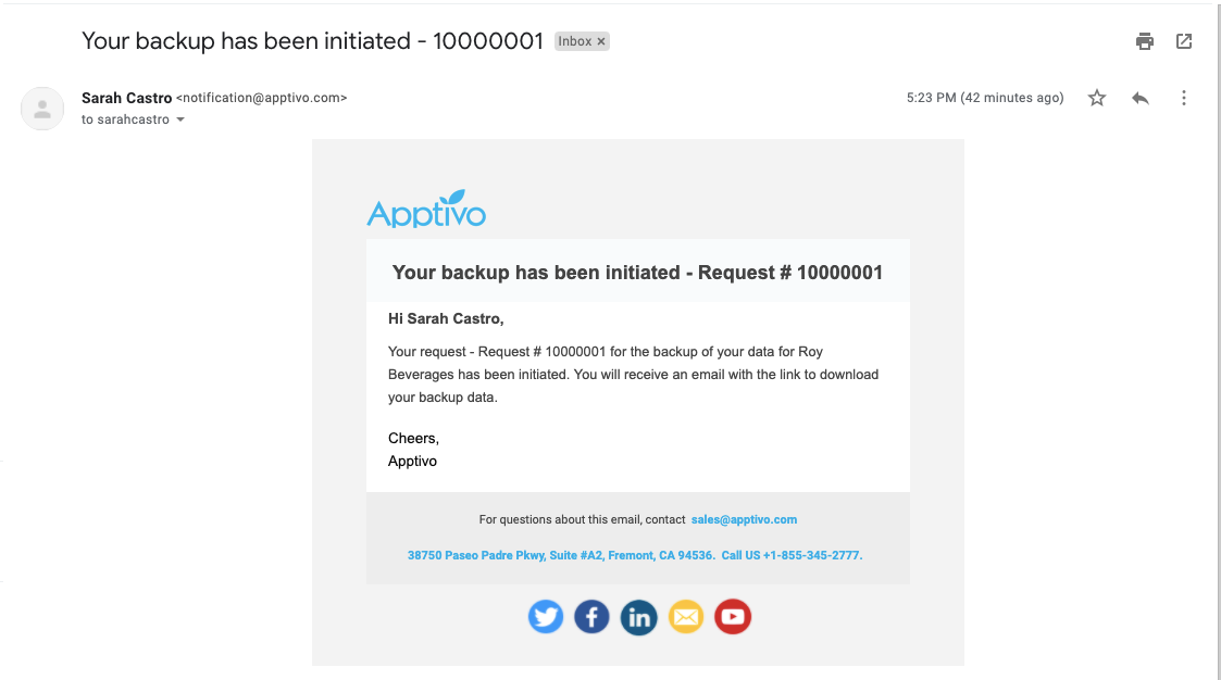 Apptivo allows you to backup the UI data as per your preferences. In addition, you will get the updated mail notifications as per your backup actions.