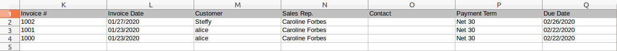 - Here, you can see that the tables present in the Invoices app like Services provided and Products/Items sold are also exported.