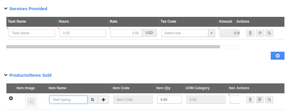 - Here, you can see that the tables present in the Invoices app like Services provided and Products/Items sold are not exported.
