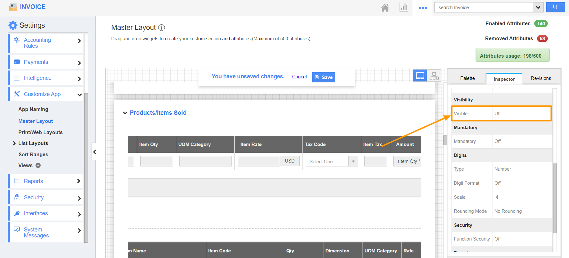 - Now, let’s provide accessibility to include all fields (both visible and hidden fields) in the layout to perform a calculation in the Tax field.