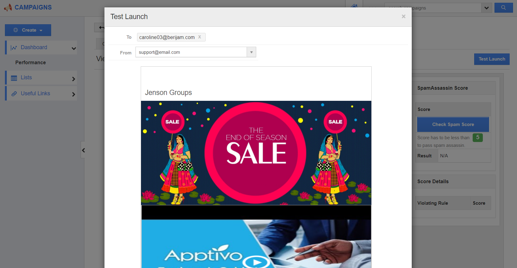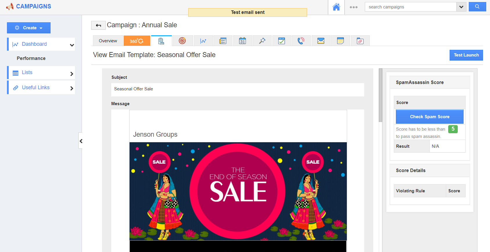 While sending out email campaigns, it's always recommended that we do a test launch of the campaign to make sure that all the content is proper. And if there is any correction, you can change it on the template.